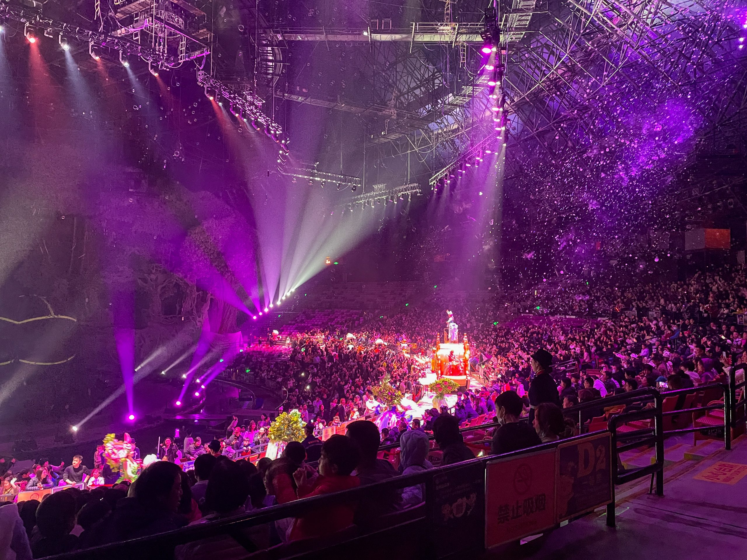 We found the audience behavior fascinating. During spectacular stunts, the hall remained almost silent with very little applause, which felt almost impolite to us. But as soon as stuffed animals were tossed into the crowd for animation, total chaos erupted as everyone fought enthusiastically for the “prey.” As soon as the giveaway ended, everyone sat back down quietly. Such a fascinating contrast!