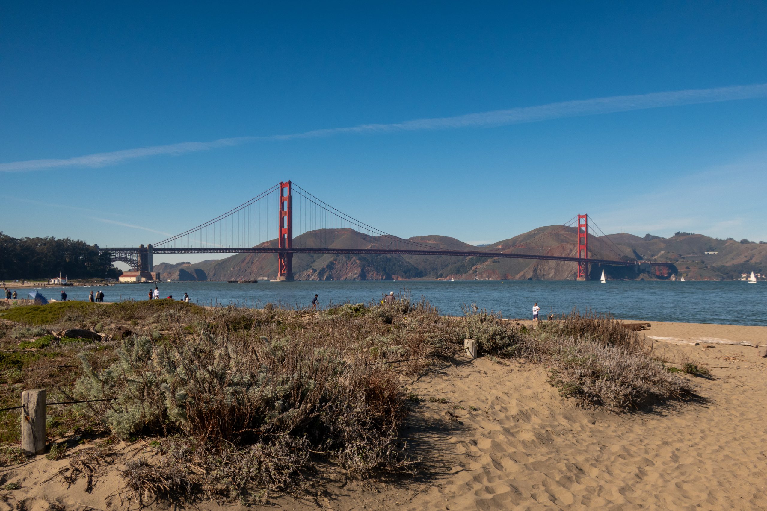 Our first direct contact with the bridge was at Golden Gate Beach. The contrast between the sandy beach in the foreground and the glowing orange of the bridge in the background was simply magical.